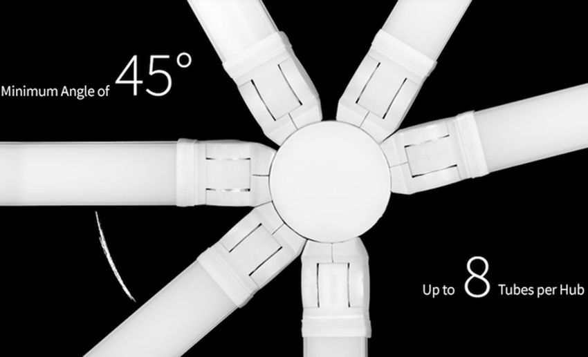 Each fixture has 180 degrees of bend at each hub. LIGEO™, makes lighting possible in 3D - with standard product that quickly and easily connects together.